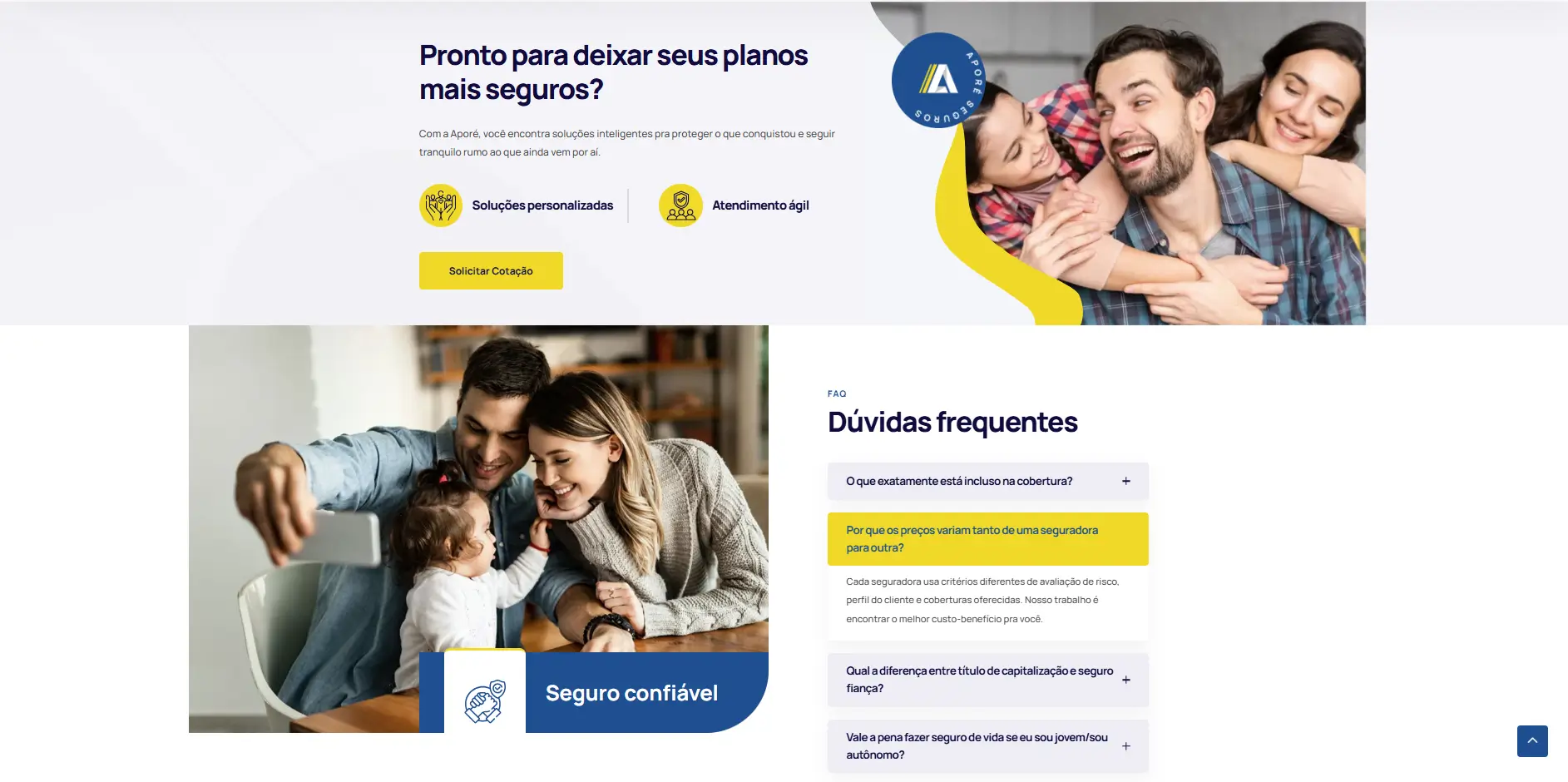 O novo site da Aporé Seguros é um avanço significativo em relação à versão anterior. O projeto foi entregue com agilidade, alinhado à proposta visual da marca e preparado para atender às necessidades reais do público da empresa.